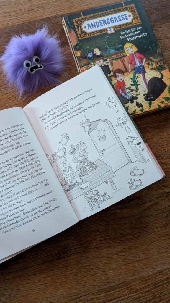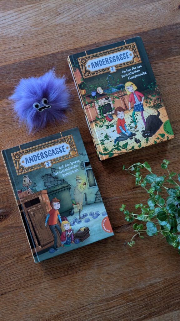 [unbezahlte Werbung/Rezensionsexemplar] Eure Kinder lesen gerne Kinderkrimis, mögen aber auch Geschichten mit fantastischen Wesen, die zudem noch ein bisschen schräg und turbulent sind. Dann schaut euch unbedingt einmal die Reihe „Andersgasse 7“ von Christiane Schreiber an. Zwei Kinder sind in einem ganz besonderen Mehrfamilienhaus als Detektive unterwegs, kommen mit vielen ungewöhnlichen Wesen in Kontakt und lösen natürlich auch den einen oder anderen Fall. Mit kurzen Kapiteln, größerer Schrift und zahlreichen schwarz-weiß Illustrationen. Passt das wunderbar für Kinder ab 8 Jahren zum Selberlesen. Vorlesen geht eher.