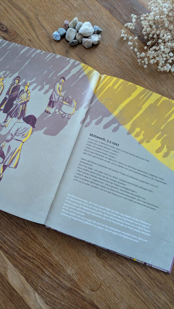 Am 27. Januar 1945 wurde das Konzentrationslager Auschwitz befreit. An diesem Datum wird deutschlandweit der „Holocaustgedenktag“ begangen. Es gibt Gedenkveranstaltungen und andere Aktionen sowie besondere Medienangebote zu dem Thema. Es ist wichtig, auch gerade zu diesen Zeiten, schon ab einem gewissen Alter mit Kinder darüber zu reden, natürlich behutsam und altersgerecht. Ganz neu erschienen ist „Damals in der Rosenstraße: Als Frauen und Kinder sich gegen die Nazi-Diktatur stellten“ von Anja Tuckermann und Anabelle von Sperber.