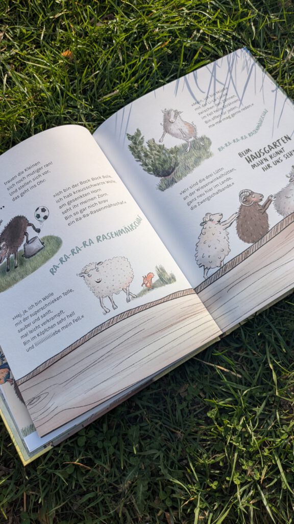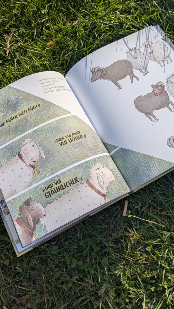 Zusammen geht es besser, auch wenn man sich noch nicht so gut kennt und auf den ersten Blick ein wenig voneinander unterscheidet! Eine schöne Botschaft, die in der sympathischen und auch witzigen Geschichte gut deutlich wird. Das lässt sich sicherlich auch wunderbar im pädagogischen Kontext besprechen. Eine kleine Anmerkung: Der bayrische (?) Akzent der Bergschafe war für mich auf den ersten Blick etwas schwierig zu lesen. Das wird sicherlich einigen Nicht – Süddeutschen (vor allem Kindern) so gehen.