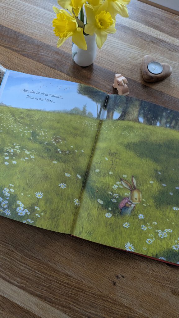 Es gibt nicht viel Text in diesem Buch, aber trotzdem wird schon alleine durch die liebevollen Bilder eine sehr schöne Geschichte über ein Hasenkind erzählt. Die Botschaft ist klar: auch wenn es hier und da nicht ganz leicht ist, ist es doch wundervoll, sowohl kleine als auch große Geschwister zu haben. Die Illustrationen haben einen nostalgischen „Anstrich“ und erinnern an die Lieblingsbilderbücher aus der eigenen Kindeheit.