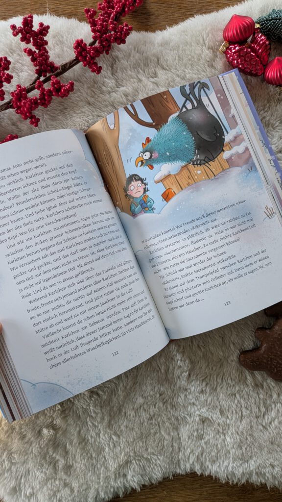 Ich bin ein großer Fan der Karlchen – Buchreihe von Lisa -Marie Dickreiter, Andreas Götz und Barbara Scholz. Allerbeste Vorlese – Unterhaltung, so witzig, dass beim Vorlesen vor Lachen Tränen kommen und so sympathisch, turbulent und nah am ehrlichen Alltag, dass man die Geschichten einfach lieben muss. Nun geht es auch auf dem kleinen Hof im Schwarzwald auf Weihnachten zu und „Karlchen hilft dem Weihnachtsmann, ob er will oder nicht“. Eine 220 Seiten starke Geschichte mit sehr vielen wirklich ganz bezaubernden Illustrationen für Kinder ab 5 Jahren (die allerdings nicht mehr fest an den Weihnachtsmann glauben sollten).