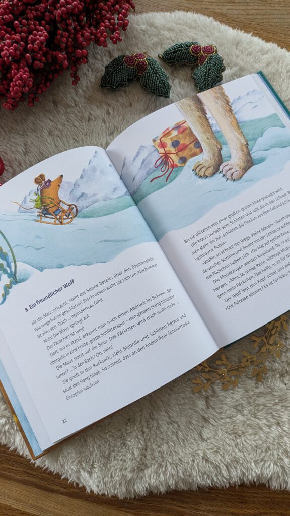 [unbezahlte Werbung/Rezensionsexemplar] Weihnachten ist eine Zeit, in der man anderen eine Freude macht. Aber auch eine Zeit, die man mit denen verbringen möchte, die man gerne um sich hat. In der liebenswerten Geschichte „Kater Klaus vermisst die Maus. Ein Weihnachtsmärchen“ von Kathrin Rohmann und Jasmin Schäfer macht sich ein mutiges kleines Tier auf zu einer besonderen Mission, während ein anderes Tier sehnsüchtig darauf wartet, dass sie zurückkehrt. Eine herzerwärmende Geschichte für Kinder ab 4 Jahren, die mit 24 Kapiteln auch gut als Adventskalenderbuch gelesen werden kann.