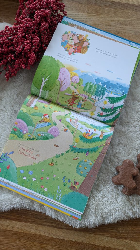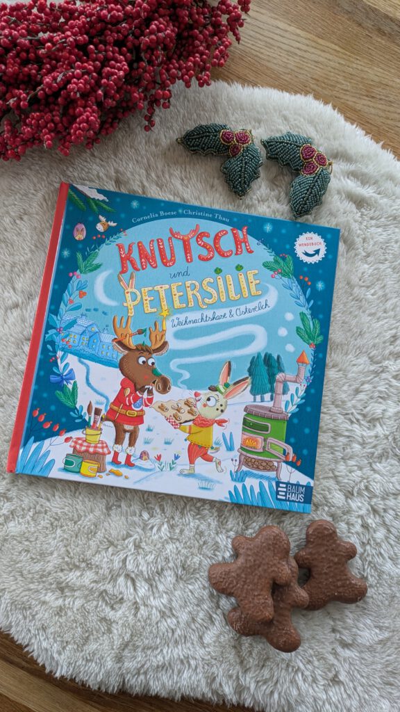 [unbezahlte Werbung/Rezensionsexemplar] Habt ihr schonmal mit euren Kindern ein Wendebuch gelesen? Diese Art von Bilderbüchern kann man von der einen und der anderen Seite lesen und hat so zwei unterschiedliche Geschichten, die aber zueinander führen und sich in der Mitte „treffen“. „Knutsch und Petersilie. Weihnachtshase & Osterelch“ von Cornelia Boese und Christine Thau ist genau so ein Buch. Mit kunterbunten, absolut liebenswerten Illustrationen und einer sympathischen „Weihnachten trifft Ostern“ Geschichte in Reimform passt das Ganze für Kinder ab 3 Jahren.