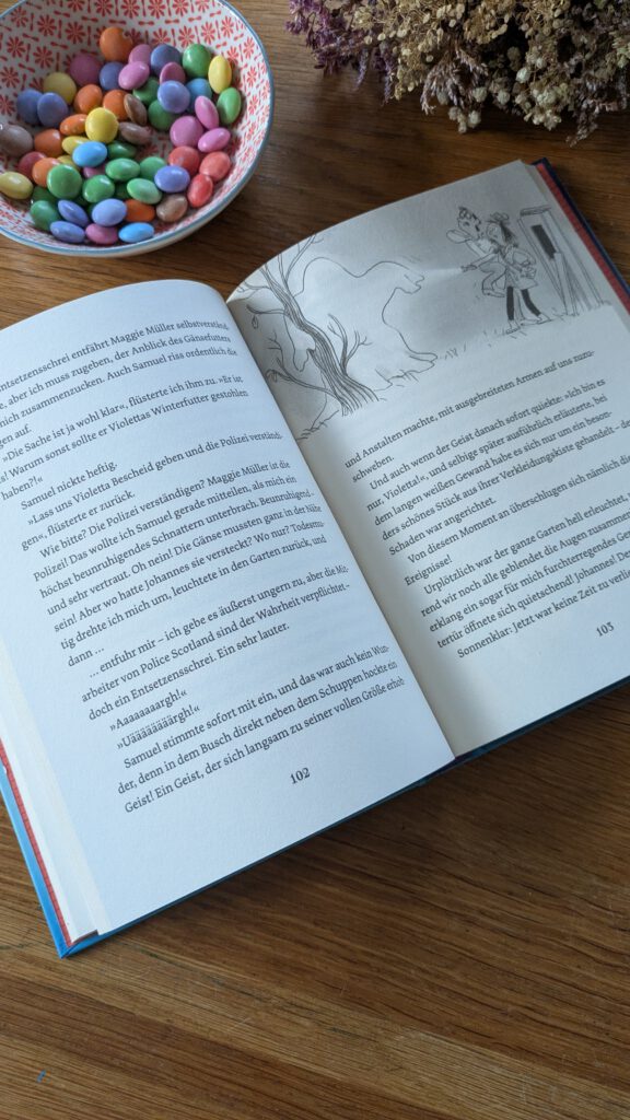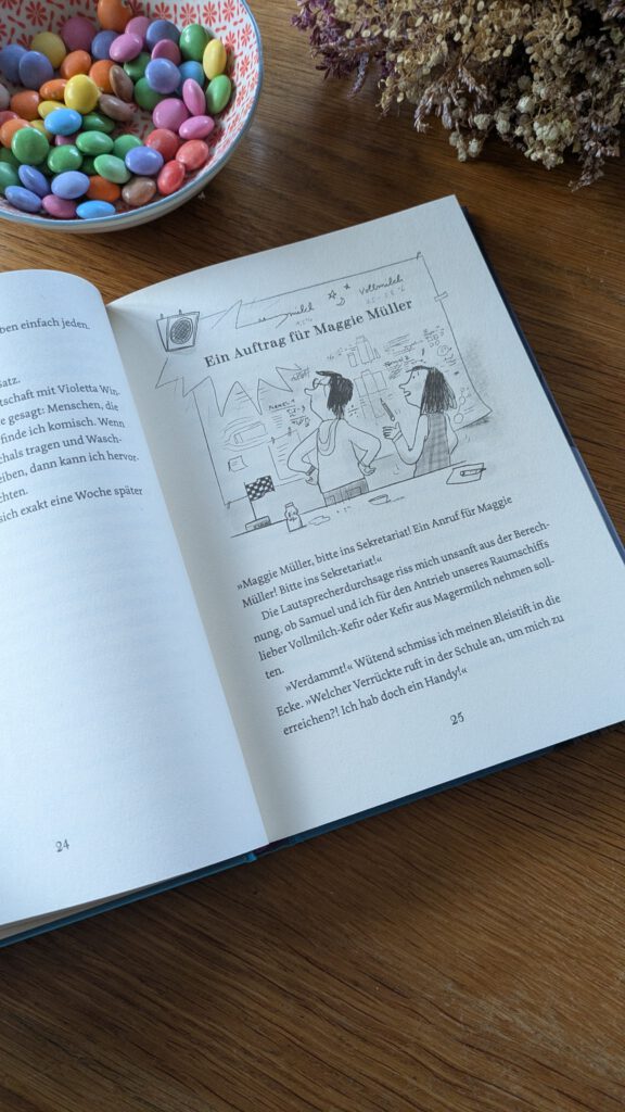 Die zehnjährige Maggie ist schon ein besonderes Kind. Sie hat niemals Angst (was ihre Eltern gar nicht so gut finden), sagt manchmal zu direkt, was sie denkt und braucht ein gutes Maß an Planung und Struktur in ihrem Leben. Zudem ist sie ziemlich clever, genau wie ihr bester (und einziger) Freund Samuel. Wer mag, kann da sicherlich den einen oder anderen charakteristischen Zug von neurodivergenten Menschen herauslesen. Auf jeden Fall weiß sie genau, was sie will, jetzt und auch in Zukunft, und geht alles sehr resolut an. Im Gegensatz dazu steht die Autorin Violetta, die ziemlich ängstlich und oft etwas durcheinander ist. Sie müssen nun aber zusammenarbeiten und Kompromisse schließen, um den Fall zu lösen. Das Ganze liest sich sehr sympatisch, oft auch mit humorvollen Momenten.