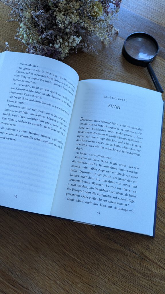 Viel mehr möchte ich hier nicht verraten! Aber es macht großen Spaß, gemeinsam mit den beiden Jungen zusammen das Rätsel der alten Bibliothek zu lösen. Es gibt viele Wendungen und überraschende Momente, ruhige, emotionale und nachdenkliche Szenen und aufregende Momente. Die Charaktere, allen voran natürlich der Kater Mortimer, sind äußerst sympathisch und sorgen auch mal für humorvolle Momente.
