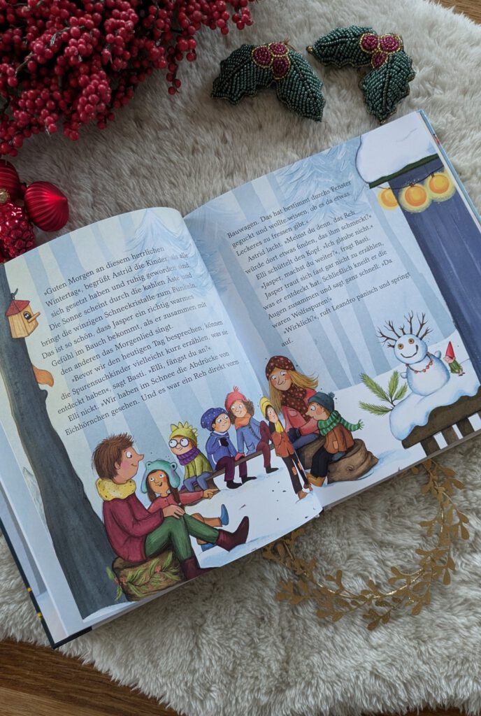 [unbezahlte Werbung/Rezensionsexemplar] Habt ihr als Kind mal bei einem Krippenspiel mitgemacht? Ich weiß noch, dass ich damals die Rolle des Gasthausbesitzers hatte, der Maria und Josef abgewiesen hat. Auch die Kinder eines Waldkindergartens planen ein Krippenspiel und sind ganz schön aufgeregt deswegen. Aber auch sonst gibt es im winterlichen Wald ganz viel zu erleben! Darüber lesen wir in „Weihnachtstrubel im Winterwald“ von Katja Frixe und Nina Hammerle, einer wirklich sympathischen, einfühlsamen und fröhlichen Vorlesegeschichte für Kinder ab 4 Jahren. Wir haben hier vier Kapitel mit schon etwas mehr Text und noch viele zauberhafte, durchgehend farbige Illustrationen. Also perfekt für Kinder, die gerne schon etwas mehr Text haben möchten als in den „üblichen“ Bilderbüchern.