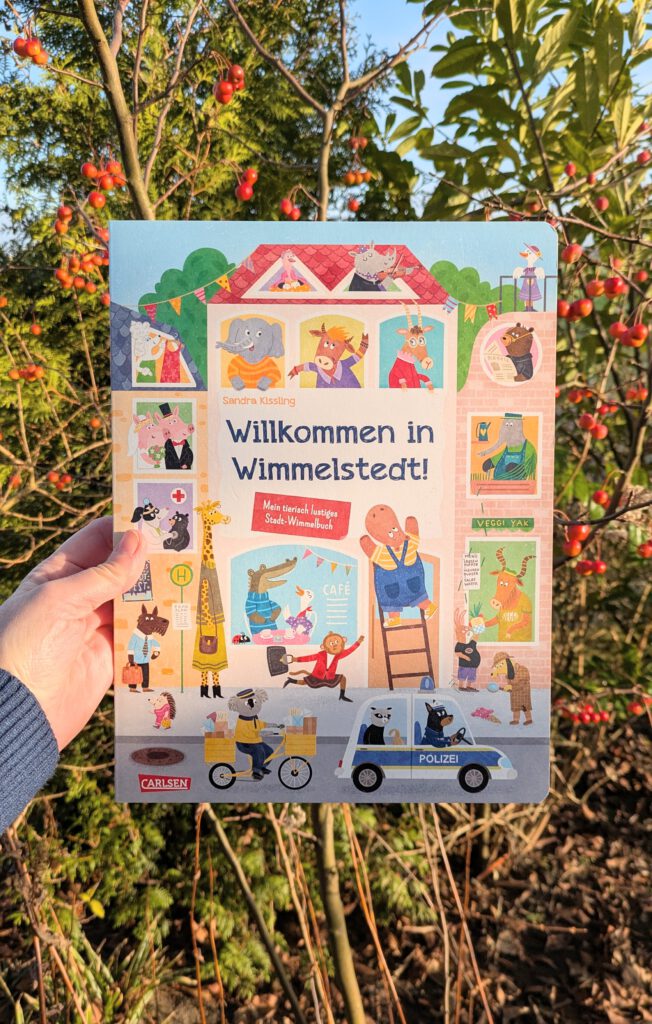 „Willkommen in Wimmelstedt! Mein tierisch lustiges Stadt – Wimmelbuch“